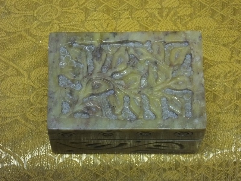 Petite boite en stéatite avec finition huile de coco pour donner un aspect marbre doré